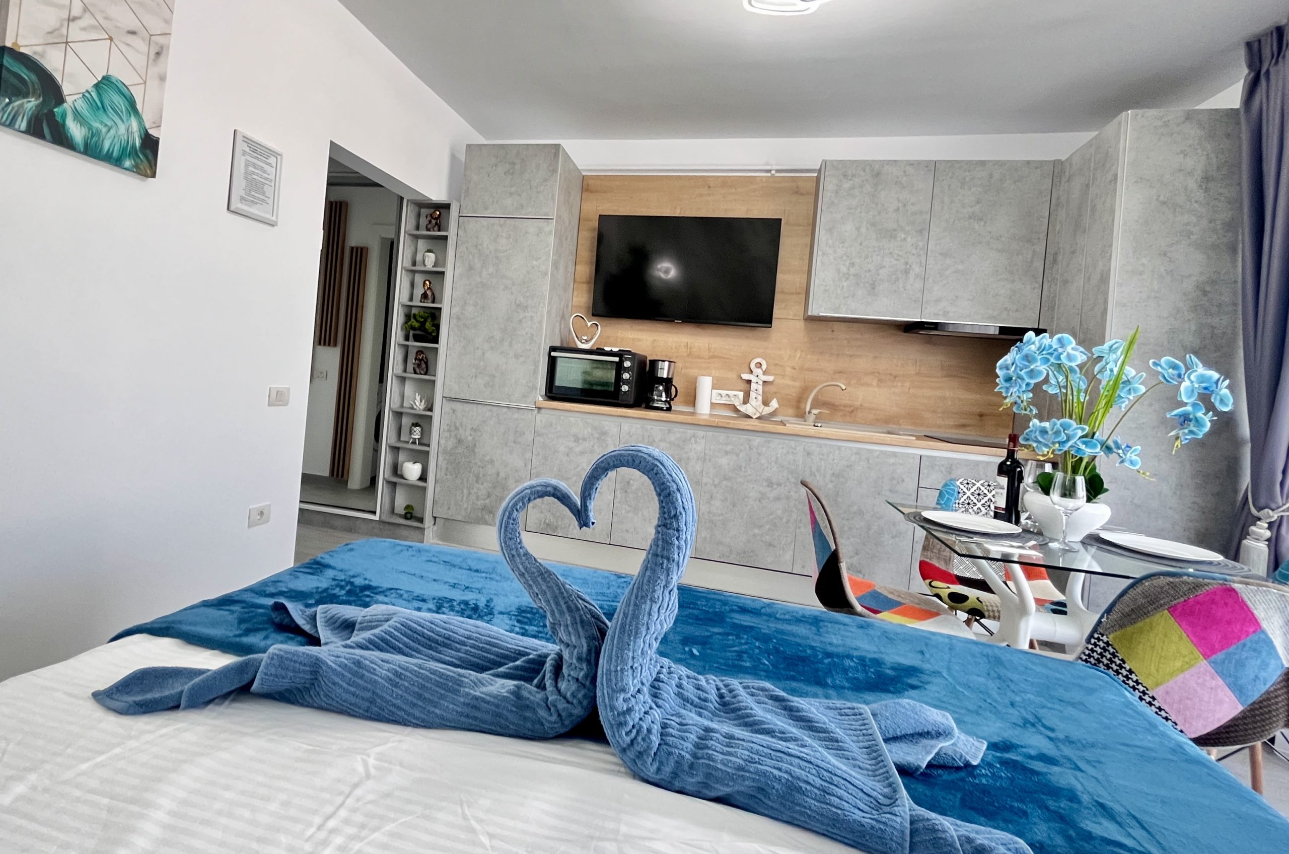 Situat în prestigiosul complex Beach Residence, la etajul 6, oferă o escapadă exclusivă pe malul mării, cu o priveliște captivantă asupra apelor albastre.Acest spațiu unic se distinge prin designul sofisticat și mobilierul de lux, creând o atmosferă de neuitat pentru sejurul dvs. Bucătăria, dotată și echipată complet, rivalizează cu confortul propriei dvs. case, asigurându-vă că va bucurati de confortul de acasa si cand sunteti in vacanta. De la finisajele alese cu grijă până la amenajările interioare de înaltă calitate, fiecare detaliu a fost conceput pentru a oferi oaspeților o experiență de neegalat. Fie că căutați o retragere liniștită la malul mării sau un punct de plecare pentru aventurile dvs. costiere, Cosmopolitan Studio este locul ideal pentru a vă bucura de confortul de acasă, îmbinat perfect cu splendoarea vieții la plajă.